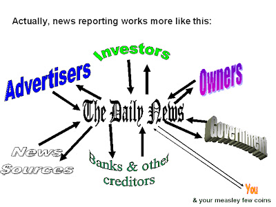 One myth (that people are hardwired to accept as fact) is that newspapers have a financial stake in telling the truth. I devised the three diagrams on this page for students. Here's a diagram of the official version of the landscape: